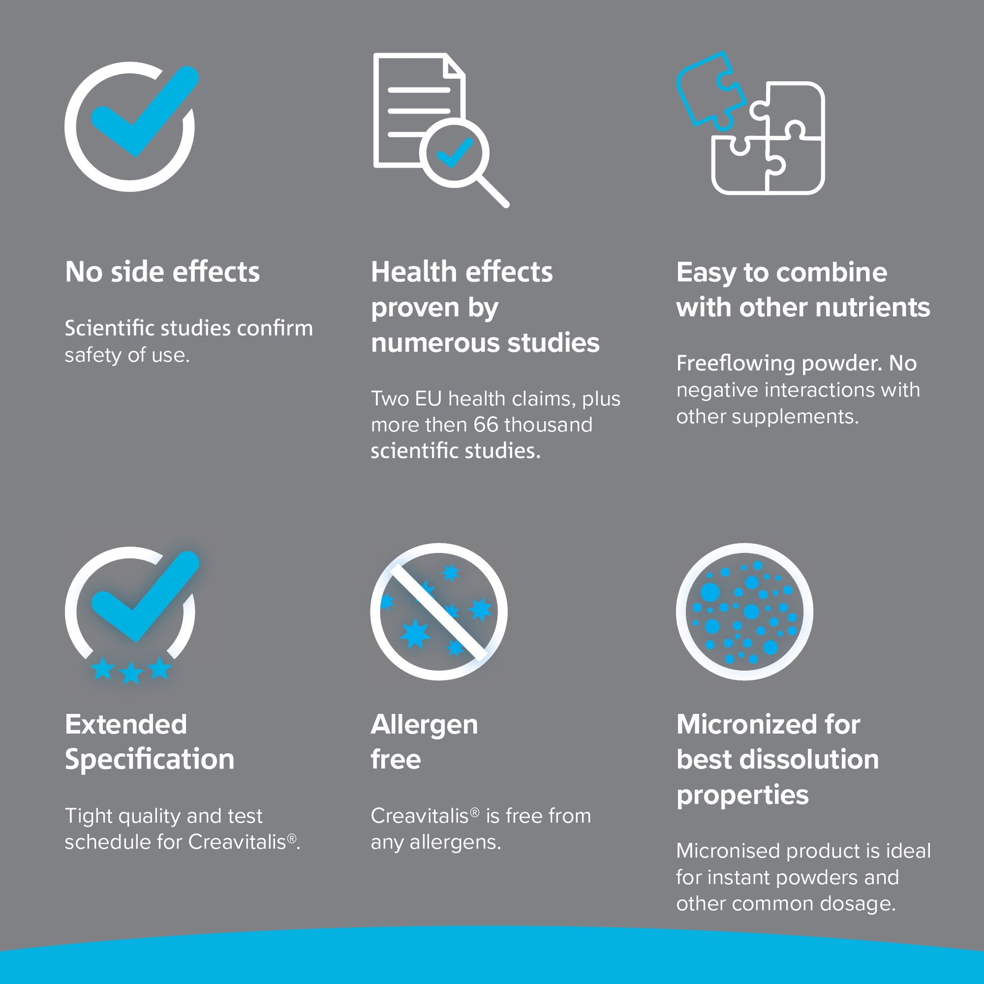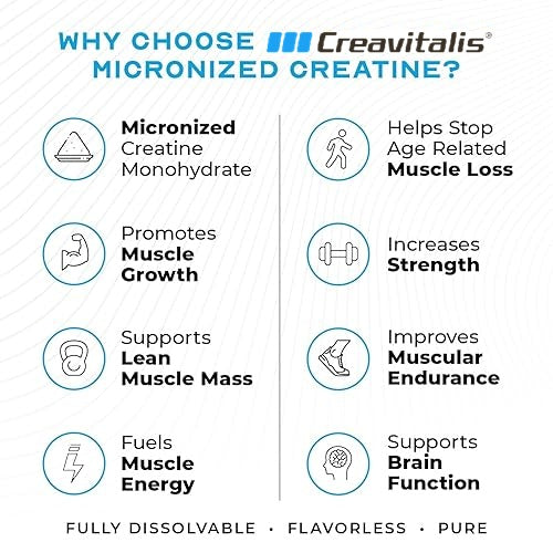 - FAST DISSOLVING CREATINE MONOHYDRATE PER 5G SERVING: Highest quality creatine monohydrate Creavitalis for optimal absorption & efficacy. Our creatine powder dissolves quickly and smoothly in water, juice, or your favorite beverage, ensuring a hassle-free supplementation experience without any clumps or residue. Our creatine is exclusively sourced from Creavitalis, the gold standard that's single sourced from Germany, not from China like most creatine on the market.